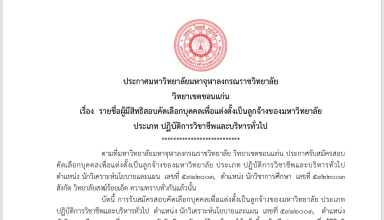 ปิดความเห็น บน ประกาศมหาวิทยาลัยมหาจุฬาลงกรณราชวิทยาลัย วิทยาเขตขอนแก่น เรื่อง รับสมัครสอบคัดเลือกบุคคลเพื่อแต่งตั้งเป็นลูกจ้างของมหาวิทยาลัย ประเภท ปฏิบัติการวิชาชีพและบริหารทั่วไป