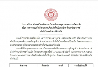 ประกาศวิทยาลัยสงฆ์ร้อยเอ็ด มหาวิทยาลัยมหาจุฬาลงกรณราชวิทยาลัย เรื่อง ผลการสอบคัดเลือกบุคคลเพื่อแต่งตั้งเป็นลูกจ้าง ตำแหน่งอาจารย์ สังกัดวิทยาลัยสงฆ์ร้อยเอ็ด