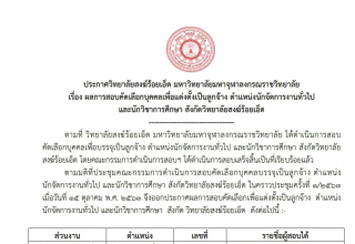 ประกาศวิทยาลัยสงฆ์ร้อยเอ็ด มหาวิทยาลัยมหาจุฬาลงกรณราชวิทยาลัย เรื่อง ผลการสอบคัดเลือกบุคคลเพื่อแต่งตั้งเป็นลูกจ้าง ตำแหน่งนักจัดการงานทั่วไป และนักวิชาการศึกษา สังกัดวิทยาลัยสงฆ์ร้อยเอ็ด
