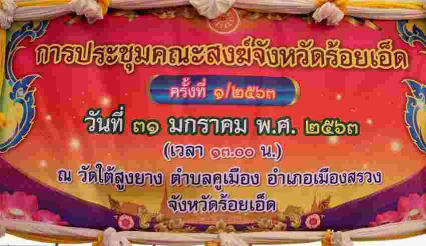วันที่ ๓๑ มกราคม ๒๕๖๓ เวลา ๑๓.๐๐ น. พระครูวาปีจันทคุณ, ดร. ผู้อำนวยการณวิทยาลัยสงฆ์ร้อยเอ็ด มหาวิทยาลัยมหาจุฬาลงกรณราชวิทยาลัย มอบหมายให้ พระครูสุตวรธรรมกิจ, ดร. รองผู้อำนวยการฝ่ายวิชาการ ดร.พระครูวินัยธรวราวุฒิ มหาวโร ผู้อำนวยการสำนักงานวิทยาลัยสงฆ์ร้อยเอ็ด ดร.พระครูปลัดสมหมาย อตฺถสิทฺโธ ผู้อำนวยการหลักสูตรพุทธศาสตรมหาบัณฑิต เข้าร่วมประชุมคณะสงฆ์จังหวัดร้อยเอ็ด ครั้งที่ ๐๑/๒๕๖๓ โดยมี พระเดชพระคุณพระราชพรหมจริยคุณ เจ้าคณะจังหวัดร้อยเอ็ด เป็นประธาน รองเจ้าคณะจังหวัด เจ้าคณะอำเภอ รองเจ้าคณะอำเภอ ทุกอำเภอ เลขานุการ เข้าร่วมประชุม ณ วัดใต้สูงยาง อำเภอเมืองสรวง จังหวัดร้อยเอ็ด
