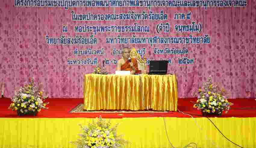Home กิจกรรมต่าง ๆ สำนักงานเจ้าคณะภาค ๙ ร่วมกับ สำนักงานเจ้าคณะจังหวัดร้อยเอ็ด และ วิทยาลัยสงฆ์ร้อยเอ็ด มหาวิทยาลัยมหาจุฬาลงกรณราชวิทยาลัย ร่วมกันจัดโครงการอบรมเชิงปฏิบัติการเพื่อพัฒนาศักยภาพเลขานุการเจ้าคณะ และเลขานุการรองเจ้าคณะ ในเขตปกครองคณะสงฆ์จังหวัดร้อยเอ็ด ภาค ๙