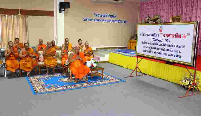 “คณะสงฆ์จังหวัดร้อยเอ็ด ภาค ๙ ร่วมกับ วิทยาลัยสงฆ์ร้อยเอ็ด มหาจุฬาลงกรณราชวิทยาลัย” ร่วมพิธีสวดพระปริตร เพื่อระงับเหตุป้องกันภัย จาก ไวรัสโควิด (COVID) เกิดกำลังใจดำเนินชีวิตในปัจจุบันของพุทธศาสนิกชนทั่วไป “เหมือนสมัยพุทธกาล เมืองไวสาลี เกิด อหิวาตกภัย อมนุสสภัย ทุพภิกขภัย ได้ระงับด้วยพระปริตรรัตนสูตร”