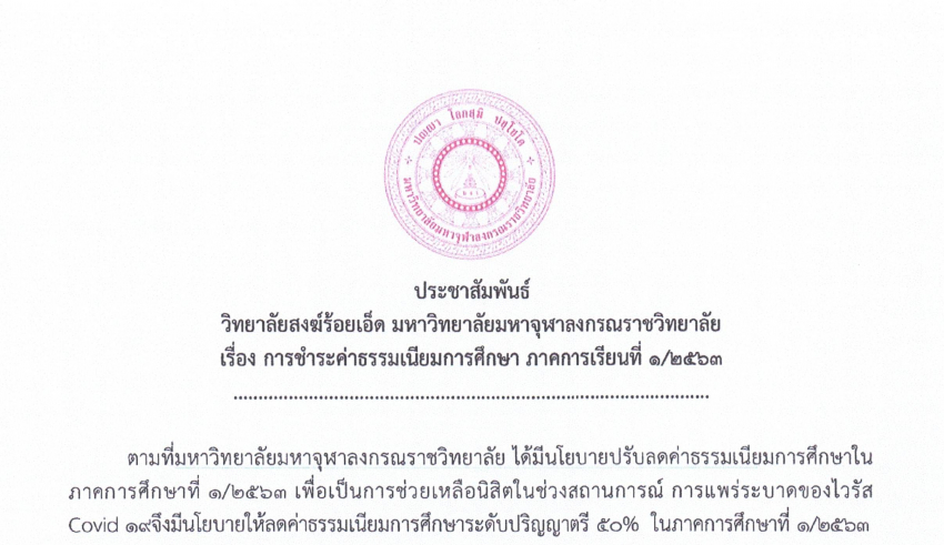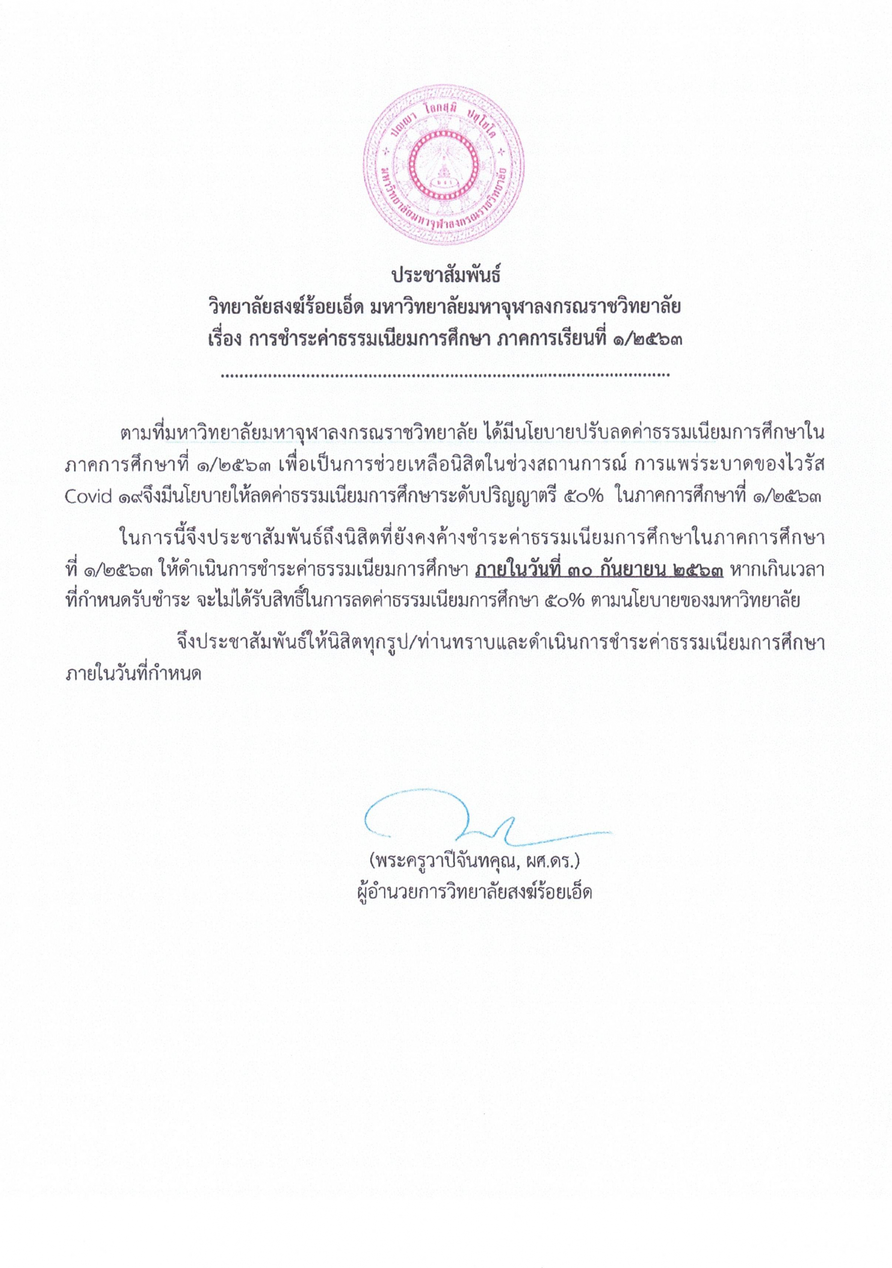 ข่าวสารประชาสัมพันธ์ ประชาสัมพันธ์ วิทยาลัยสงฆ์ร้อยเอ็ดมหาวิทยาลัยมหาจุฬาลงกรณราชวิทยาลัย เรื่อง การชำระค่าธรรมเนียมการศึกษา ภาคการเรียนที่ ๑/๒๕๖๓ By Posted on 22 กันยายน 2020 0 second read ปิดความเห็น บน ประชาสัมพันธ์ วิทยาลัยสงฆ์ร้อยเอ็ดมหาวิทยาลัยมหาจุฬาลงกรณราชวิทยาลัย เรื่อง การชำระค่าธรรมเนียมการศึกษา ภาคการเรียนที่ ๑/๒๕๖๓ 1 890