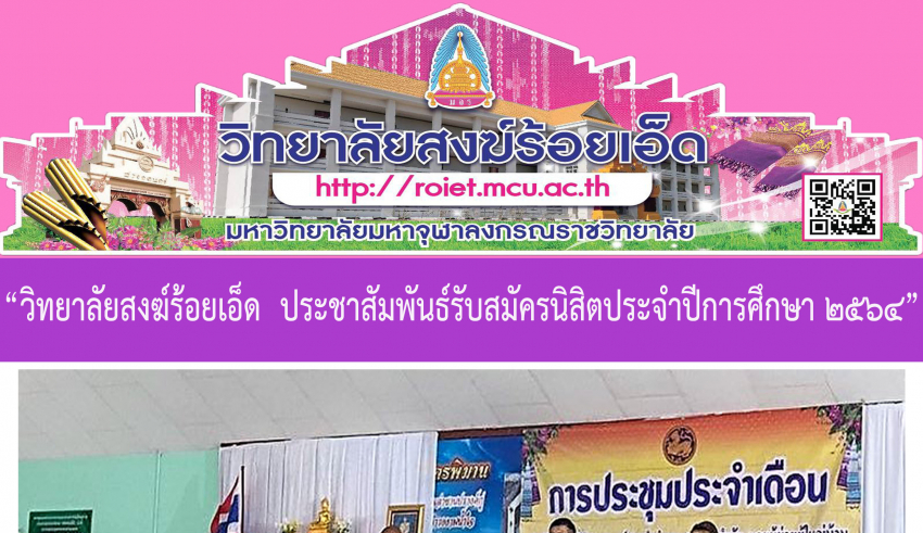 วิทยาลัยสงฆ์ร้อยเอ็ด ประชาสัมพันธ์รับสมัครนิสิตประจำปีการศึกษา ๒๕๖๔