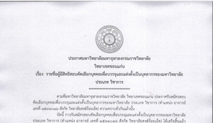 Home ข่าวสารประชาสัมพันธ์ ประกาศมหาวิทยาลัยมหาจุฬาลงกรณราชวิทยาลัย วิทยาเขตขอนแก่น เรื่อง รายชื่อผู้มีสิทธิสอบคัดเลือกบุคคลเพื่อบรรจุและแต่งตั้งเป็นบุคลากรของมหาวิทยาลัย ประเภท วิชาการ