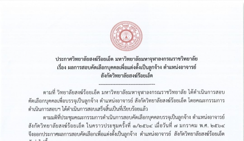 Home ข่าวสารประชาสัมพันธ์ ประกาศวิทยาลัยสงฆ์ร้อยเอ็ด มหาวิทยาลัยมหาจุฬาลงกรณราชวิทยาลัย เรื่อง ผลการสอบคัดเลือกบุคคลเพื่อแต่งตั้งเป็นลูกจ้าง ตำแหน่งอาจารย์ สังกัดวิทยาลัยสงฆ์ร้อยเอ็ด รายละเอียดตามเอกสารแนบครับ