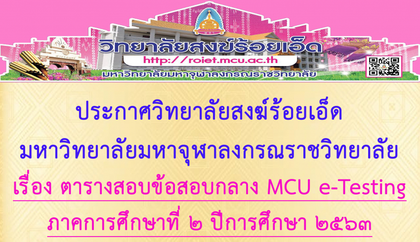ข่าวสารประชาสัมพันธ์ ประกาศวิทยาลัยสงฆ์ร้อยเอ็ด มหาวิทยาลัยมหาจุฬาลงกรณราชวิทยาลัย เรื่อง ตารางสอบข้อสอบกลาง MCU e-Testing ภาคการศึกษาที่ ๒ ปีการศึกษา ๒๕๖๓ By Posted on 8 มีนาคม 2021 0 second read ปิดความเห็น บน ประกาศวิทยาลัยสงฆ์ร้อยเอ็ด มหาวิทยาลัยมหาจุฬาลงกรณราชวิทยาลัย เรื่อง ตารางสอบข้อสอบกลาง MCU e-Testing ภาคการศึกษาที่ ๒ ปีการศึกษา ๒๕๖๓ 0 939 222ประกาศสอบข้อสอบกลาง ภาคเรียนที่ 2.63 ชั้นปี