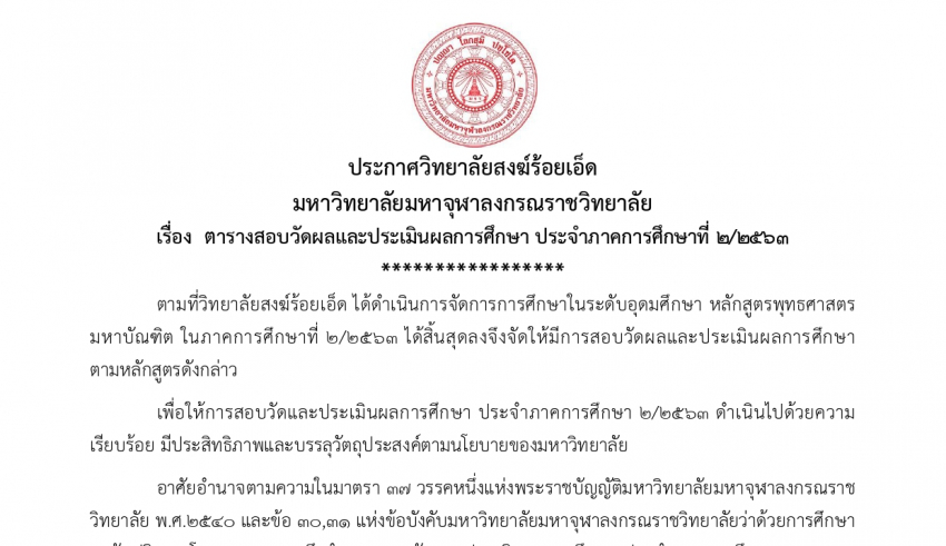 ข่าวสารประชาสัมพันธ์ ประกาศ วิทยาลัยสงฆ์ร้อยเอ็ด มหาวิทยาลัยมหาจุฬาลงกรณราชวิทยาลัย เรื่อง ตารางสอบวัดผล หลักสูตรพุทธศาสตรมหาบัณฑิต By Posted on 17 มีนาคม 2021 0 second read ปิดความเห็น บน ประกาศ วิทยาลัยสงฆ์ร้อยเอ็ด มหาวิทยาลัยมหาจุฬาลงกรณราชวิทยาลัย เรื่อง ตารางสอบวัดผล หลักสูตรพุทธศาสตรมหาบัณฑิต 0 809 11ตารางสอบ ป. โท ปี ๑, ปี ๒ ภาคการศึกษาที่. 2.63 (2564)