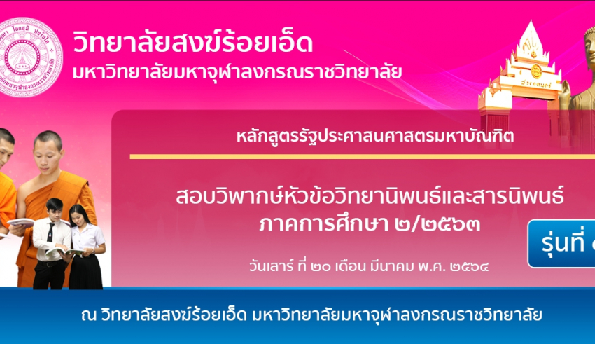 วิทยาลัยสงฆ์ร้อยเอ็ด มหาวิทยาลัยมหาจุฬาลงกรณราชวิทยาลัย สอบวิพากษ์หัวข้อวิทยานิพนธ์และสารนิพนธ์ ภาคการศึกษา ๒/๒๕๖๓ รุ่นที่ ๑ หลักสูตรรัฐประศาสนศาสตรมหาบัณฑิต