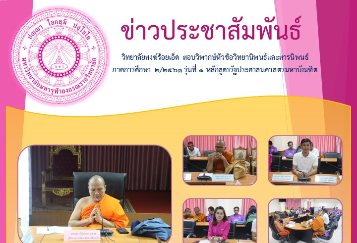 ข่าวสารประชาสัมพันธ์ วิทยาลัยสงฆ์ร้อยเอ็ด สอบวิพากษ์หัวข้อวิทยานิพนธ์และสารนิพนธ์ ภาคการศึกษา ๒/๒๕๖๓ รุ่นที่ ๑ หลักสูตรรัฐประศาสนศาสตรมหาบัณฑิต By Posted on 3 เมษายน 2021 0 second read ปิดความเห็น บน วิทยาลัยสงฆ์ร้อยเอ็ด สอบวิพากษ์หัวข้อวิทยานิพนธ์และสารนิพนธ์ ภาคการศึกษา ๒/๒๕๖๓ รุ่นที่ ๑ หลักสูตรรัฐประศาสนศาสตรมหาบัณฑิต 0 548