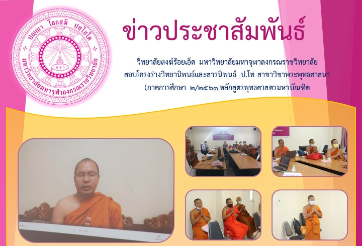 Home ข่าวสารประชาสัมพันธ์ วิทยาลัยสงฆ์ร้อยเอ็ด มหาวิทยาลัยมหาจุฬาลงกรณราชวิทยาลัย สอบโครงร่างวิทยานิพนธ์และสารนิพนธ์ ป.โท สาขาวิชาพระพุทธศาสนา (ภาคการศึกษา ๒/๒๕๖๓ หลักสูตรพุทธศาสตรมหาบัณฑิต