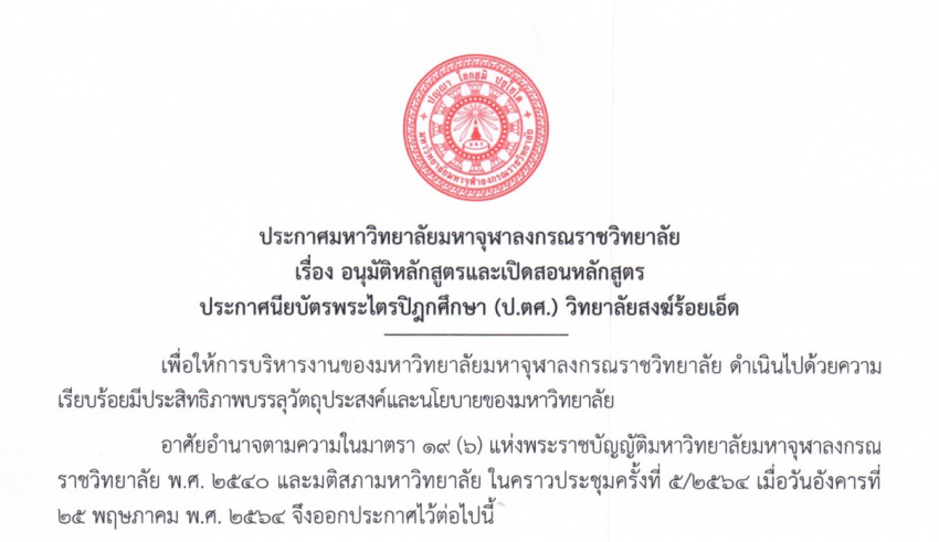 ข่าวสารประชาสัมพันธ์ ประกาศ มหาวิทยาลัยมหาจุฬาลงกรณราชวิทยาลัย เรื่อง อนุมัติหลักสูตรและเปิดสอนหลักสูตร ประกาศนียบัตรพระไตรปิฎกศึกษา (ป.ตศ.) วิทยาลัยสงฆ์ร้อยเอ็ด By Posted on 31 พฤษภาคม 2021 0 second read ปิดความเห็น บน ประกาศ มหาวิทยาลัยมหาจุฬาลงกรณราชวิทยาลัย เรื่อง อนุมัติหลักสูตรและเปิดสอนหลักสูตร ประกาศนียบัตรพระไตรปิฎกศึกษา (ป.ตศ.) วิทยาลัยสงฆ์ร้อยเอ็ด 0 762