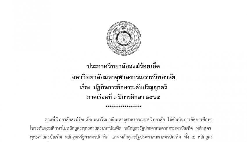ข่าวสารประชาสัมพันธ์ ประกาศวิทยาลัยสงฆ์ร้อยเอ็ด มหาวิทยาลัยมหาจุฬาลงกรณราชวิทยาลัย เรื่อง ปฏิทินการศึกษาระดับปริญญาตรี ภาคเรียนที่ ๑ ปีการศึกษา ๒๕๖๔ By Posted on 1 มิถุนายน 2021 0 second read ปิดความเห็น บน ประกาศวิทยาลัยสงฆ์ร้อยเอ็ด มหาวิทยาลัยมหาจุฬาลงกรณราชวิทยาลัย เรื่อง ปฏิทินการศึกษาระดับปริญญาตรี ภาคเรียนที่ ๑ ปีการศึกษา ๒๕๖๔ 0 858 ปฏิทินการศึกษา ภาคเรียนที่ ๑. ๒๕๖๔