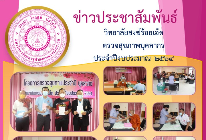 วิทยาลัยสงฆ์ร้อยเอ็ด ตรวจสุขภาพบุคลากร ประจำปีงบประมาณ ๒๕๖๔