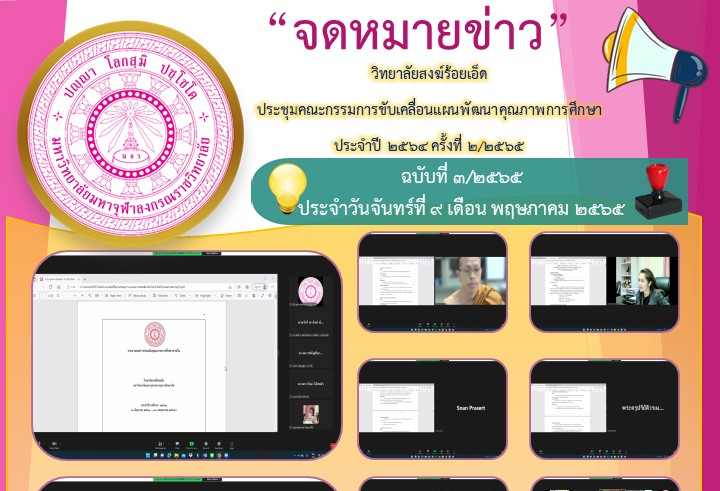 Home ข่าวสารประชาสัมพันธ์ “วิทยาลัยสงฆ์ร้อยเอ็ด ประชุมคณะกรรมการขับเคลื่อนแผนพัฒนาคุณภาพการศึกษา ประจำปี ๒๕๖๔ ครั้งที่ ๒/๒๕๖๕ ” ฉบับที่ ๓/๒๕๖๕ ประจำวันจันทร์ที่ ๙ เดือน พฤษภาคม ๒๕๖๕