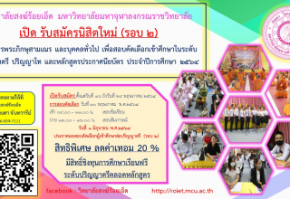 วิทยาลัยสงฆ์ร้อยเอ็ด มหาวิทยาลัยมหาจุฬาลงกรณราชวิทยาลัย เปิด รับสมัครนิสิตใหม่ (รอบ ๒) รับสมัครพระภิกษุสามเณร และบุคคลทั่วไป เพื่อสอบคัดเลือกเข้าศึกษาในระดับปริญญาตรี ปริญญาโท และหลักสูตรประกาศนียบัตร ประจำปีการศึกษา ๒๕๖๔