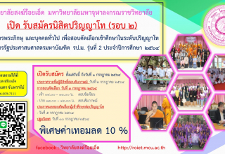 วิทยาลัยสงฆ์ร้อยเอ็ด มหาวิทยาลัยมหาจุฬาลงกรณราชวิทยาลัย เปิด รับสมัครนิสิตปริญญาโท (รอบ ๒) รับสมัครพระภิกษุ และบุคคลทั่วไป เพื่อสอบคัดเลือกเข้าศึกษาในระดับปริญญาโท หลักสูตรรัฐประศาสนศาสตรมหาบัณฑิต รป.ม. รุ่นที่ 2 ประจำปีการศึกษา ๒๕๖๔